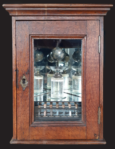 2022Observatiekast met antieke maankaart, albasten bol, loden kogels en spiegels
